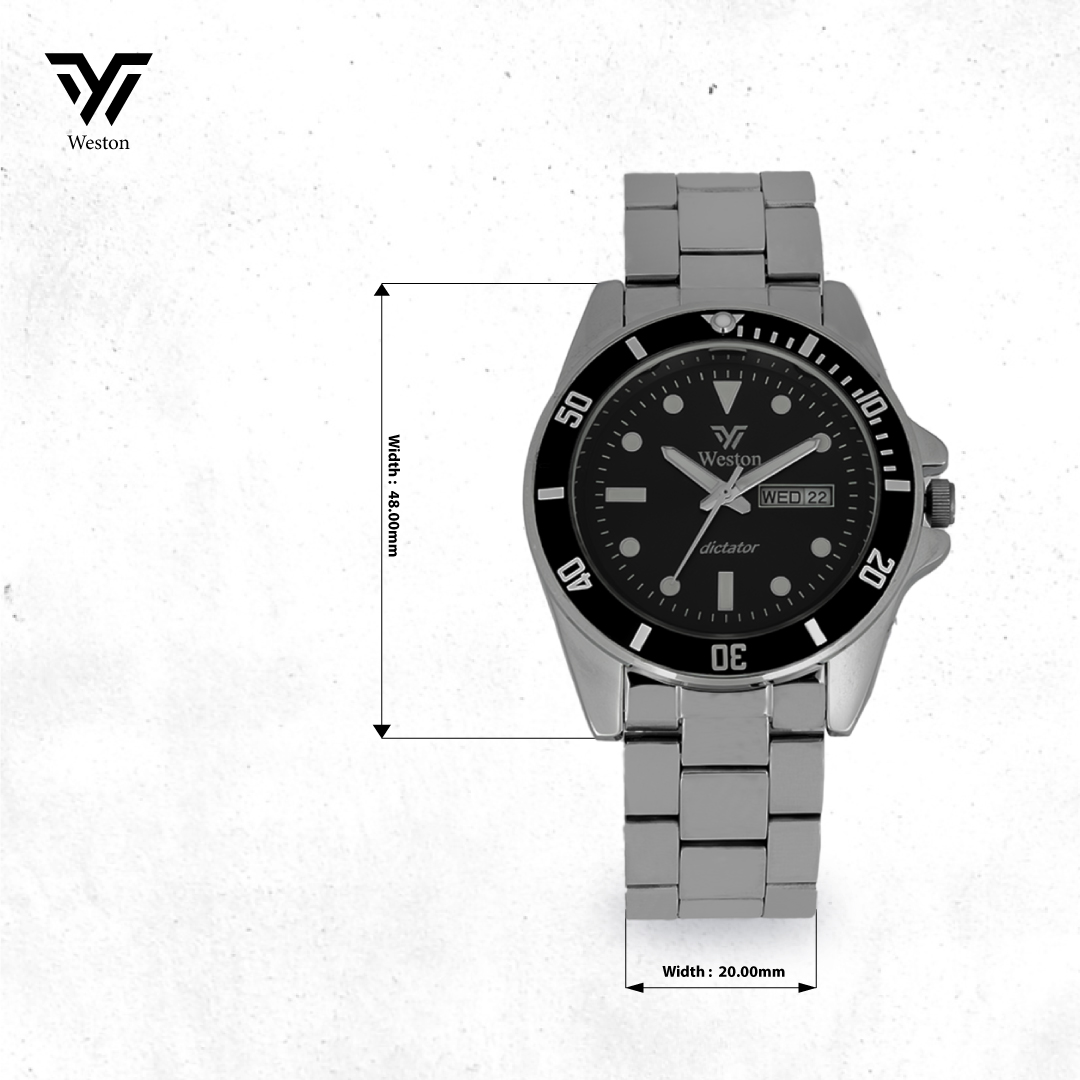 The Weston Dictator is not just a watch; it’s a symbol of power and authority. This rugged timepiece features a large, black dial with a bold silver-tone bezel that commands attention. The stainless steel case and bracelet add to its masculine appeal, making it the perfect accessory for the confident man.